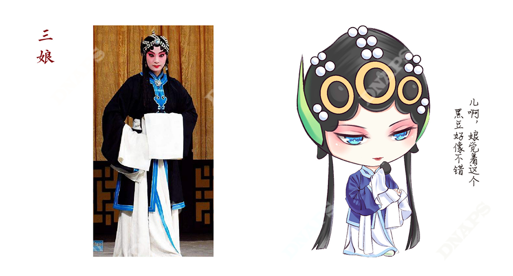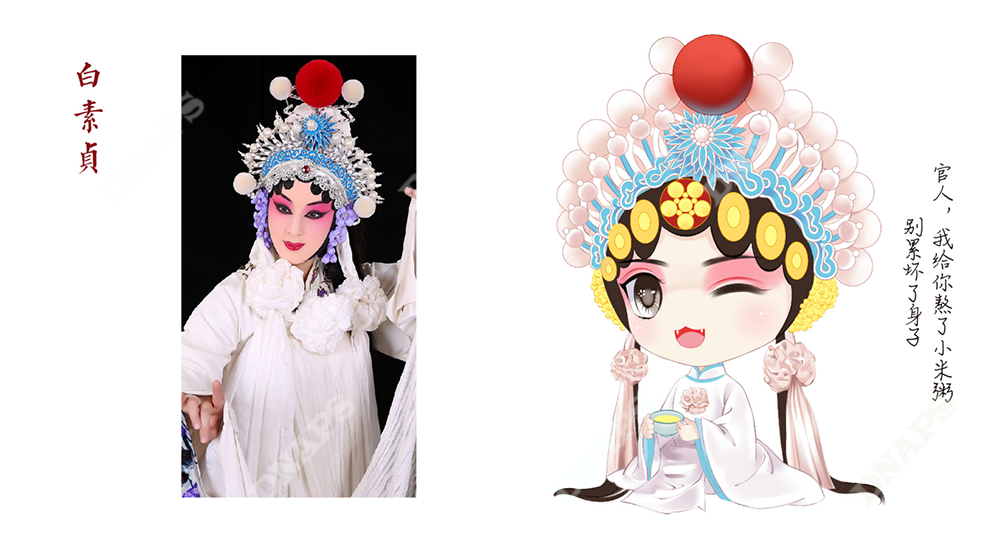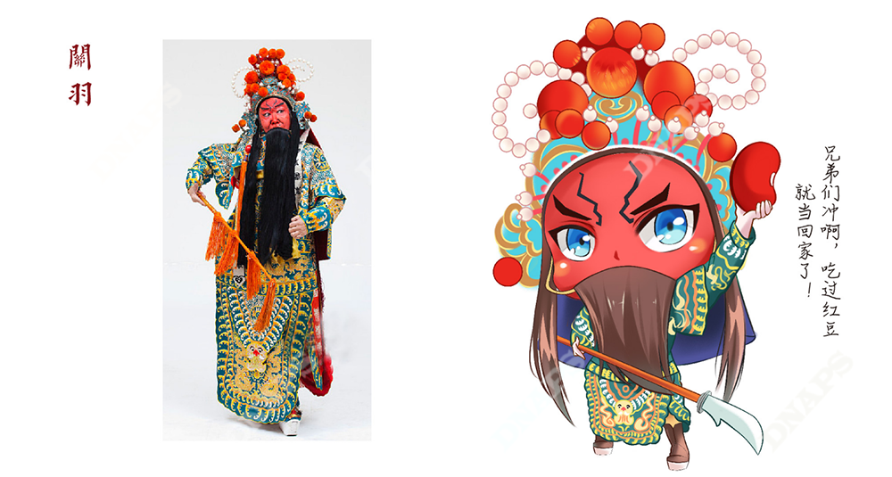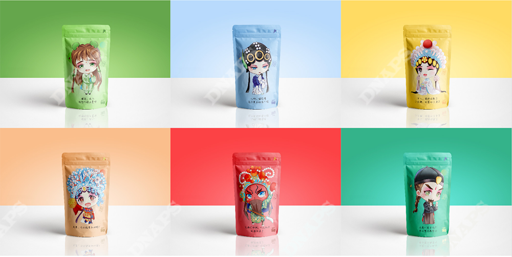 設(shè)計(jì)師結(jié)合山西晉劇,選取經(jīng)典晉劇人物形象作為產(chǎn)品代言人進(jìn)行設(shè)計(jì)。采用動(dòng)漫的筆法進(jìn)行人物繪制,把五谷雜糧與人物相結(jié)合,使產(chǎn)品更加年輕化,煥發(fā)新的活力。